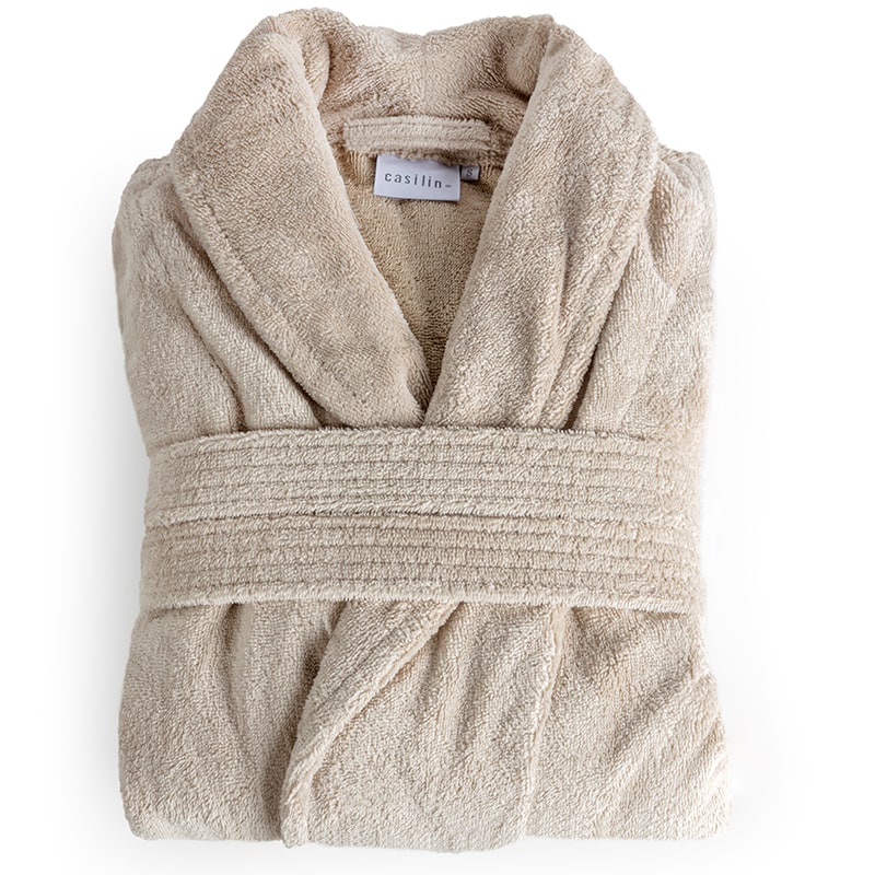 Badjas mannen Teddy – Beige is van de Royal Touch collectie van het merk Casilin. Deze mannen badjas van Royal Touch is ideaal om in huis aan te trekken en om in te chillen. Hij is ook geschikt om mee te nemen voor een weekendje weg omdat hij licht is om te dragen. Verder neemt de badjas mannen goed water en vocht op, ideaal dus na een bad of douche. De badjas kan op 60 graden gewassen worden. De leverancier adviseert om badjas de eerste paar keer apart te wassen.