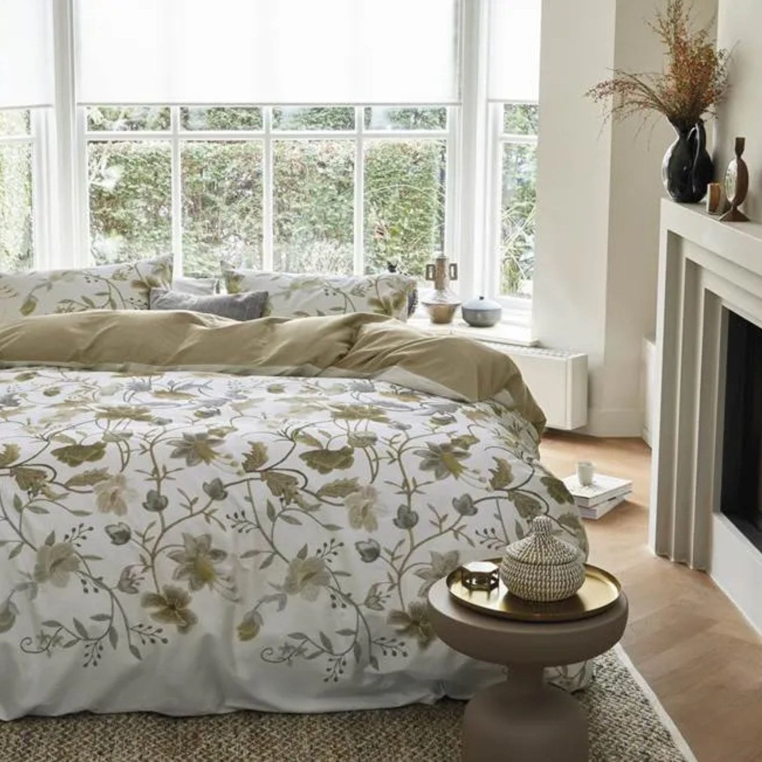 Haal de natuur in huis met het Beddinghouse Elizabeth dekbedovertrek. Het overtrek bevat een sierlijke print van bloemen en bladeren die speels over het geheel zijn geplaatst. Dankzij de zachte aardetinten op een lichte ondergrond ontstaat er een rustgevende uitstraling die je helpt om iedere avond ontspannen in slaap te vallen. Draai je het overtrek om, dan verschijnt een effen achterzijde waarmee je eenvoudig kunt variëren en een luxe omslag kunt creëren.