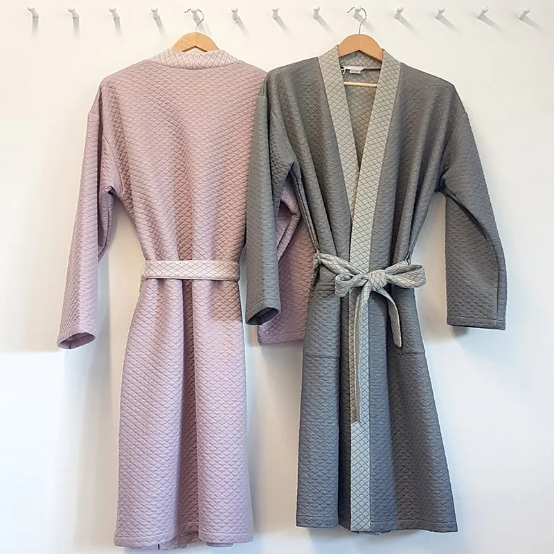Bella Donna kamerjas unisex is een moderne kamerjas van hoge kwaliteit. De kamerjas in kimono stijl is aangenaam licht en soepel. De Bella Donna zomer badjas is van dezelfde stof gemaakt als de Bella Donna zomerdeken, heerlijk om in de warmere seizoenen te dragen. De zomer badjas is gemaakt van een zachte, comfortabele kwaliteit van hoogwaardige katoen jersey en natuurlijke cellulosevezel TENCEL™ Lyocell. De zomer badjas heren/ dames (unisex) is geschikt voor dagelijks gebruik als aangename overslag of als ademende badjas.