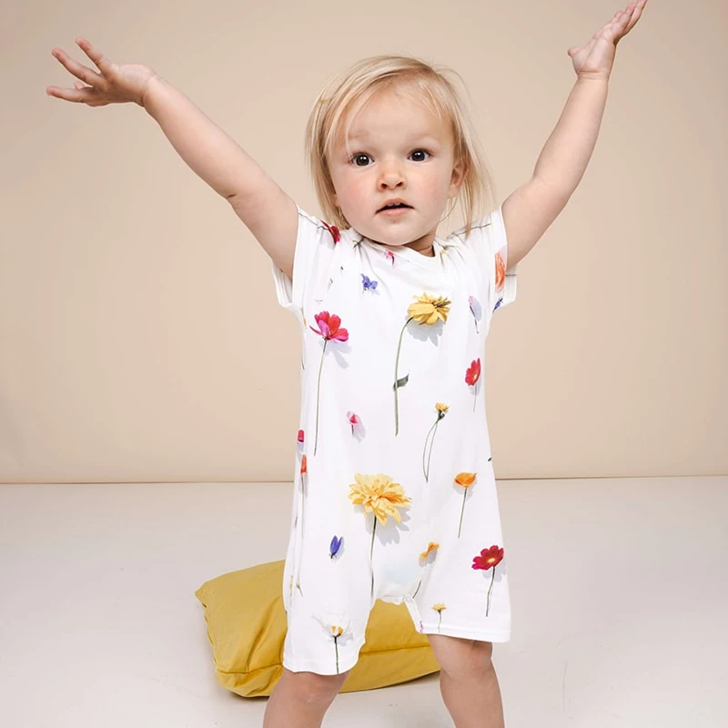 Baby playsuit met fotoprint gemaakt van 95% biologisch katoen, 5% elastaan.