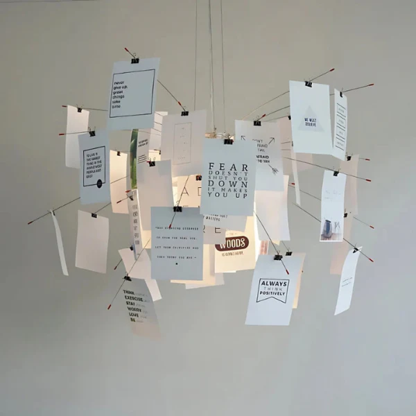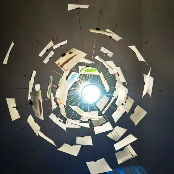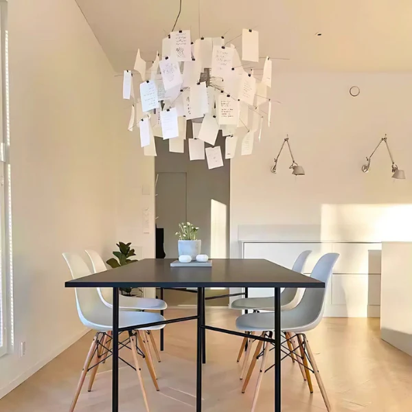 Breng creativiteit en elegantie in je huis met deze aanpasbare papieren hanglamp. De lichte vellen maken het mogelijk om notities, tekeningen of berichten toe te voegen, waardoor een uniek stuk ontstaat dat met je herinneringen meegroeit. Zachte LED-verlichting creëert een warme en uitnodigende sfeer, terwijl de hoogwaardige stalen constructie duurzaamheid en stijl garandeert. Perfect voor woonkamers, slaapkamers, kantoren of creatieve studio’s.