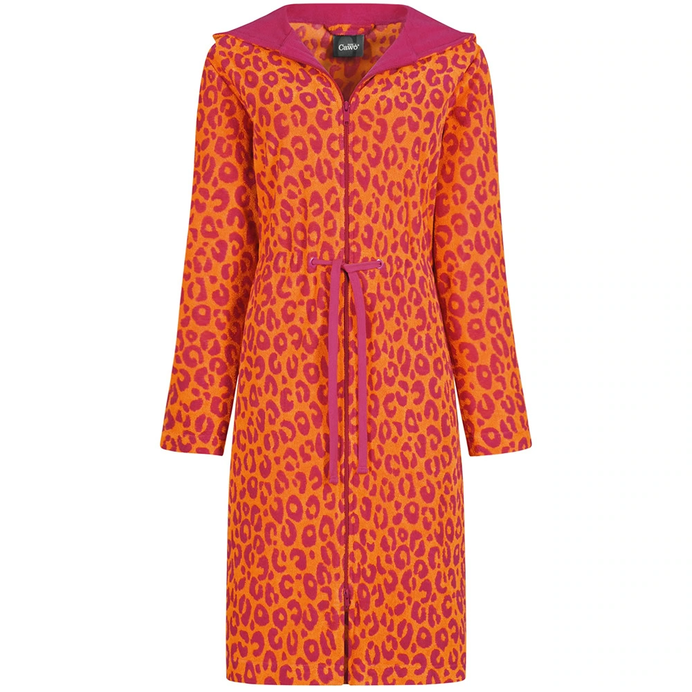 Cawö Dames Badjas met rits ‘Leo Pink’ is een stijlvolle, korte badjas met capuchon in een vrolijke kleur Oranje met Roze en heeft een subtiel Two-Tone Luipaard design. Deze hoogwaardige frotté- mix voelt zacht aan op de huid, is onderhoudsvriendelijk en perfect voor ontspannende momenten thuis of na je douche. Dankzij het moderne design en comfortabele pasvorm combineert hij praktisch comfort met elegante uitstraling. Een fijne upgrade voor je dagelijkse wellnessroutine.
