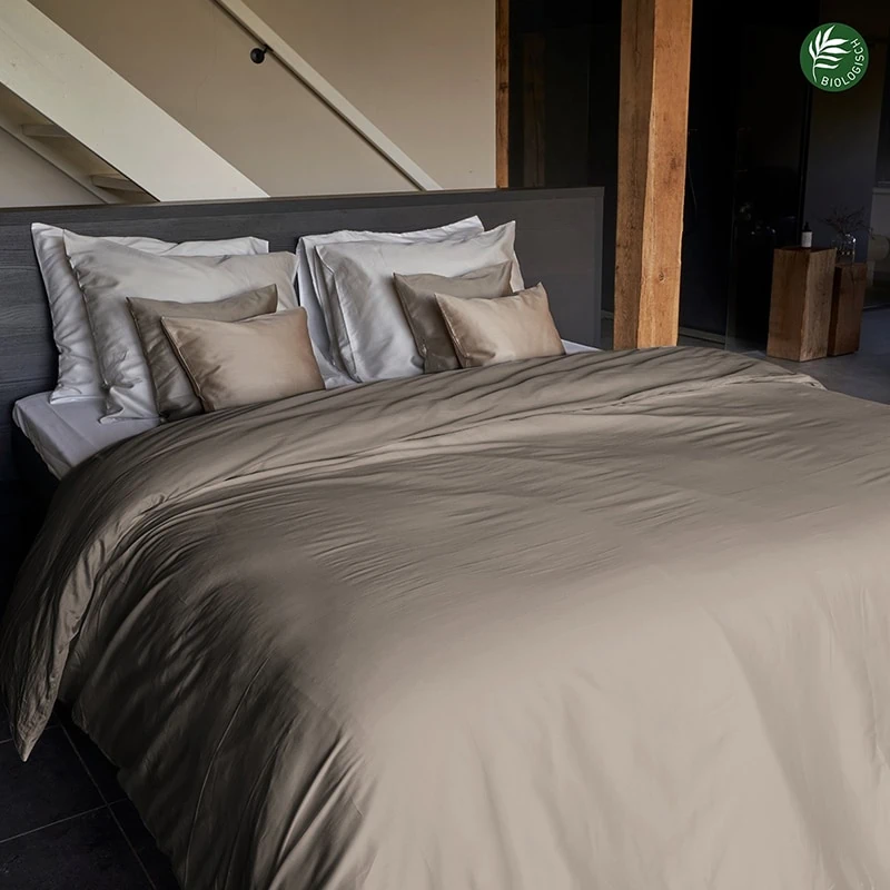 Het organisch katoen satijn dekbedovertrek in de kleur ‘Boomschors’ is gemaakt van 100% gecertificeerd biologisch katoen. Het biologisch katoen dekbedovertrek is gemaakt in satijnweving, dit zorgt voor een glans en geeft de stof een luxe uitstraling. Katoen satijn is heerlijk zacht, glad en valt heel soepel. Dit bio katoen dekbedovertrek is heerlijk om onder te slapen en het bed sfeervol mee aan te kleden. Het dekbedovertrek biologisch katoen satijn is ademend en ventilerend, geschikt voor alle jaargetijden.
