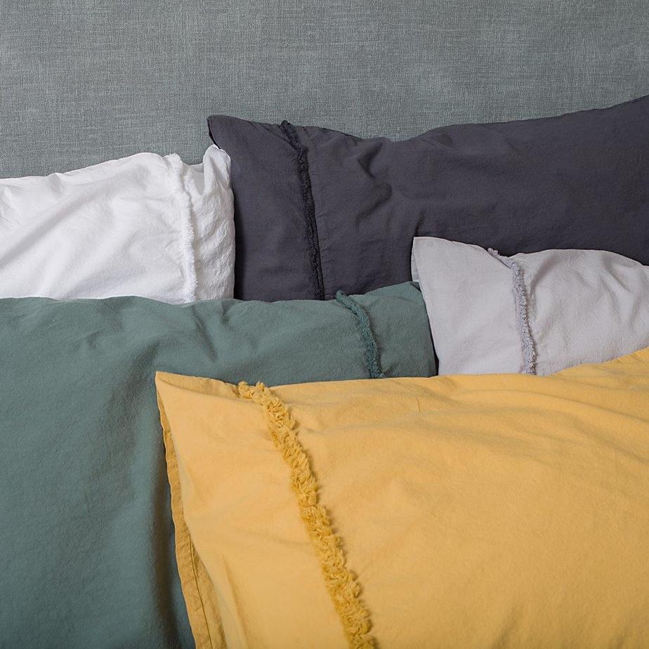 Het katoenen dekbedovertrek past goed bij een van deze hoeslakens, slopen of deze mooi matchende bedsprei.