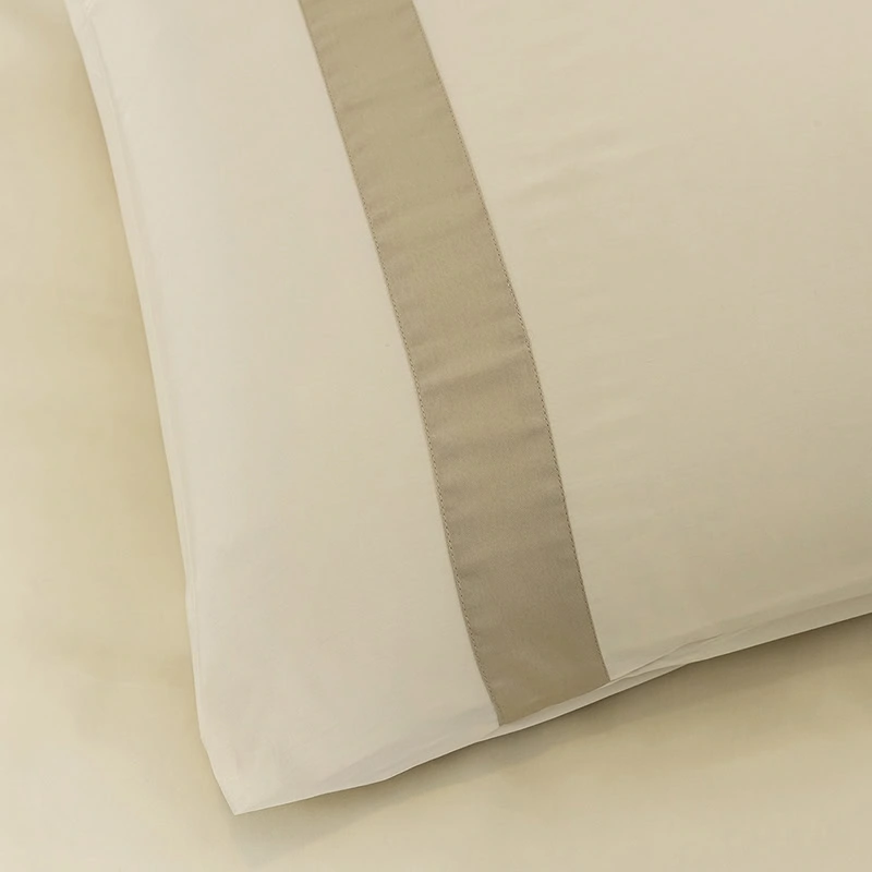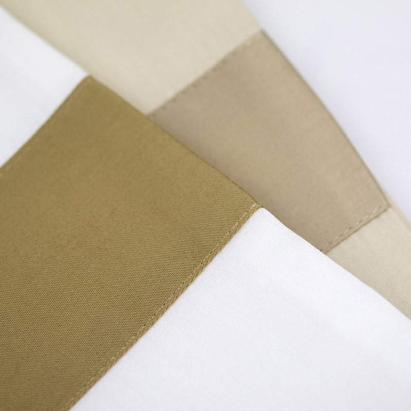 Het Listra Beige/ Kaki dekbedovertrek, gemaakt van katoen satijn, straalt elegantie uit. Wat het bijzonder maakt, is de horizontale kaki kleurige band die over het dekbedovertrek loopt, terwijl de bijpassende kussenslopen een verticale kaki kleurige band hebben. Het gebruikte katoen satijn, met een threadcount van 300, is een hoogwaardige stof die bekendstaat om zijn duurzaamheid en weerstand tegen pillen. Het voelt glad en zacht aan, wat het geschikt maakt voor elk seizoen.
