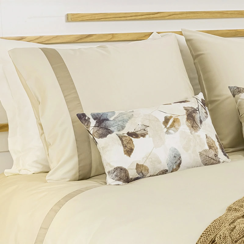 Vind je het leuk om het dekbedovertrek net als de afbeelding te combineren met kussenslopen in print, bekijk dan bijvoorbeeld het dessin ‘Fall Nootmuskaat’.