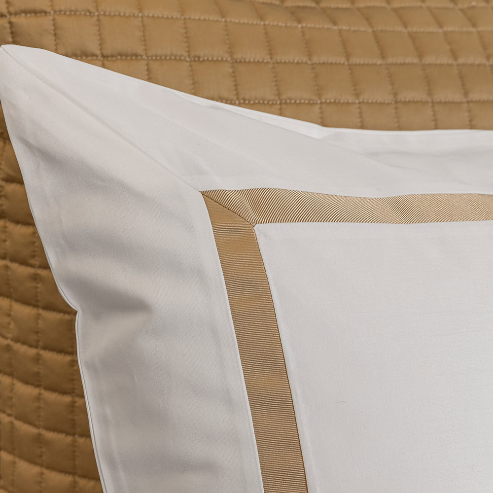 Het wit dekbedovertrek met gouden cordon is verkrijgbaar in verschillende maten: 140 x 200/220, 240 x 200/220 en 260 x 200/220. Losse slopen in 60×70 zijn eveneens verkrijgbaar.