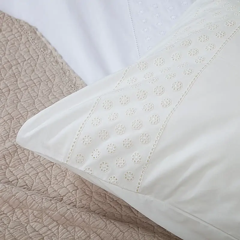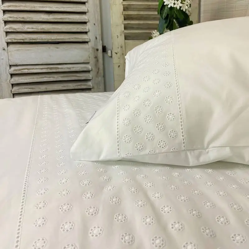 Dekbedovertrek percal katoen – Olivia Offwhite is een romantisch broderie dekbedovertrek.