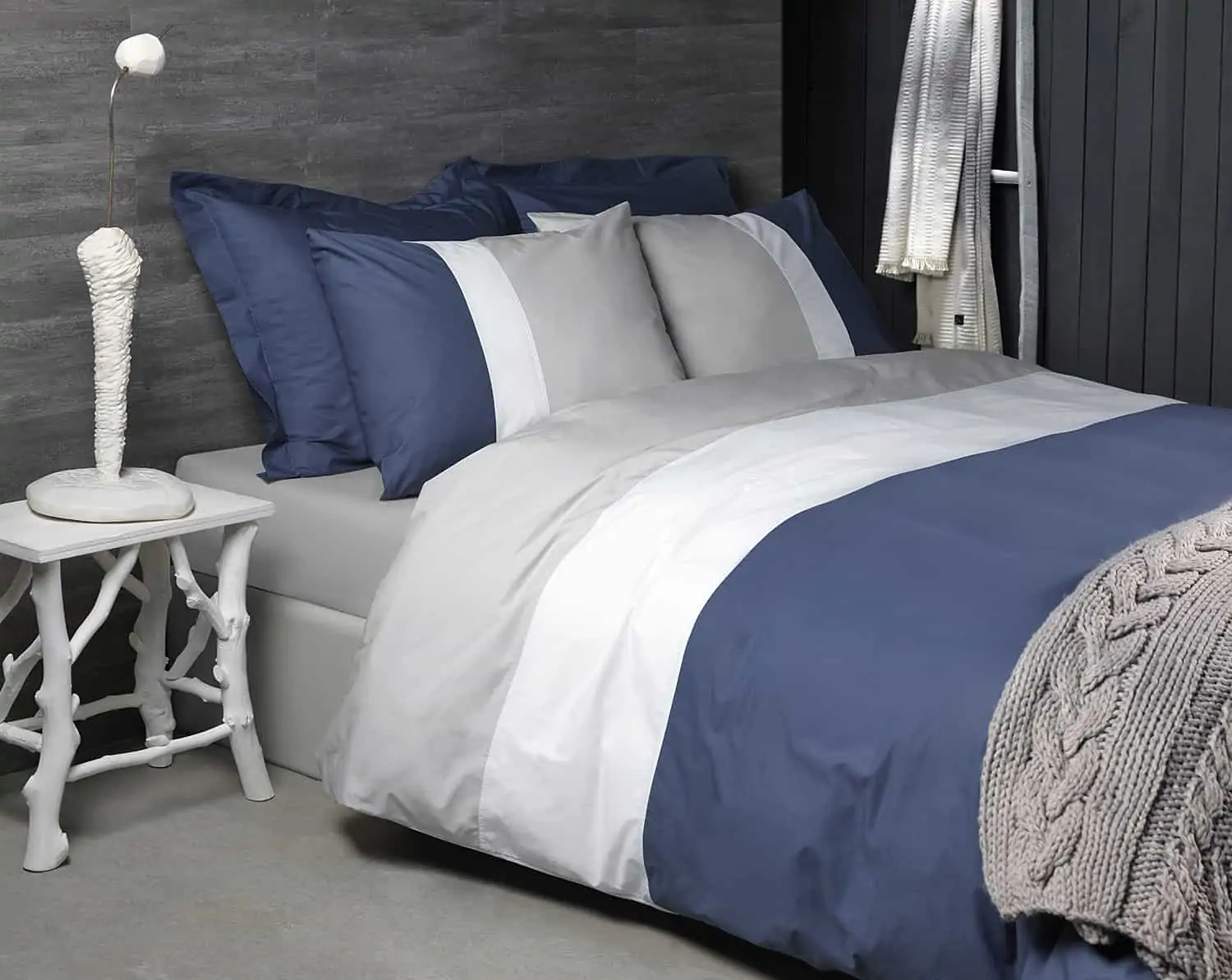 Dekbedovertrek percal katoen – Padua Nachtblauw is een modern dekbedovertrek in drie mooie kleuren. De contrasterende kleuren die voorkomen zijn zilvergrijs, wit en nachtblauw. Zoek je een modern dessin voor op het bed waar blauw in voorkomt? Dan is Padua zeker iets voor jou!