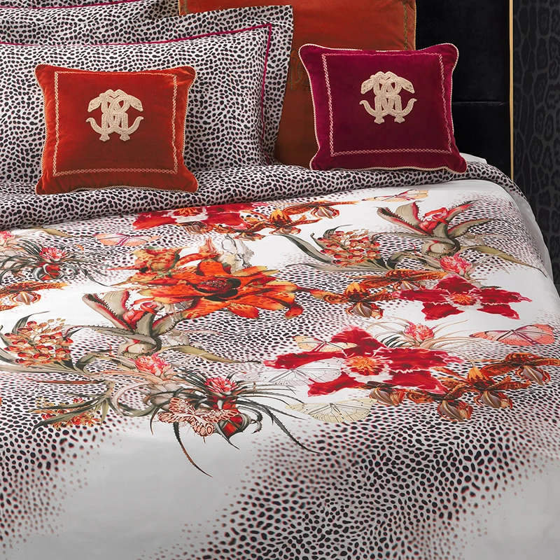 Een prachtig kleurrijke blikvanger van Roberto Cavalli! Het Floral Reef dekbedovertrek met elegante oranje bloemen geeft een warme gloed in je slaapkamer. De rijke tinten en verfijnde bloemmotieven geven je bed direct een stijlvolle uitstraling. Gemaakt van 100% katoensatijn met een draaddichtheid van 300 TC, voelt de stof heerlijk zacht en soepel aan, terwijl de easy-care afwerking zorgt voor eenvoudig onderhoud.