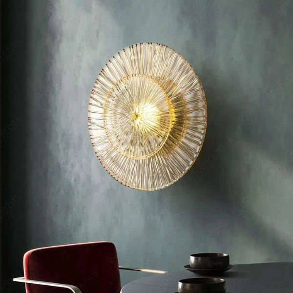 Breng een vleugje luxe en moderne stijl in je interieur met deze kristallen wandlamp. Het ontwerp combineert gouden metalen buizen met transparante kristallen buizen voor een stijlvolle uitstraling en extra helder licht. Perfect voor woonkamers, slaapkamers, gangen of cafés die op zoek zijn naar sfeervolle verlichting en een retro-industriële touch.