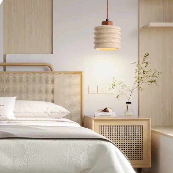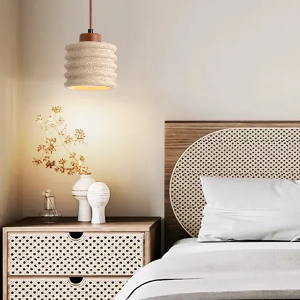 Creëer een serene en uitnodigende ruimte met deze plafondlamp van natuursteen en hout. Het geribbelde oppervlak verspreidt het licht zacht en zorgt voor warmte en elegantie, terwijl het bij diverse interieurstijlen past.