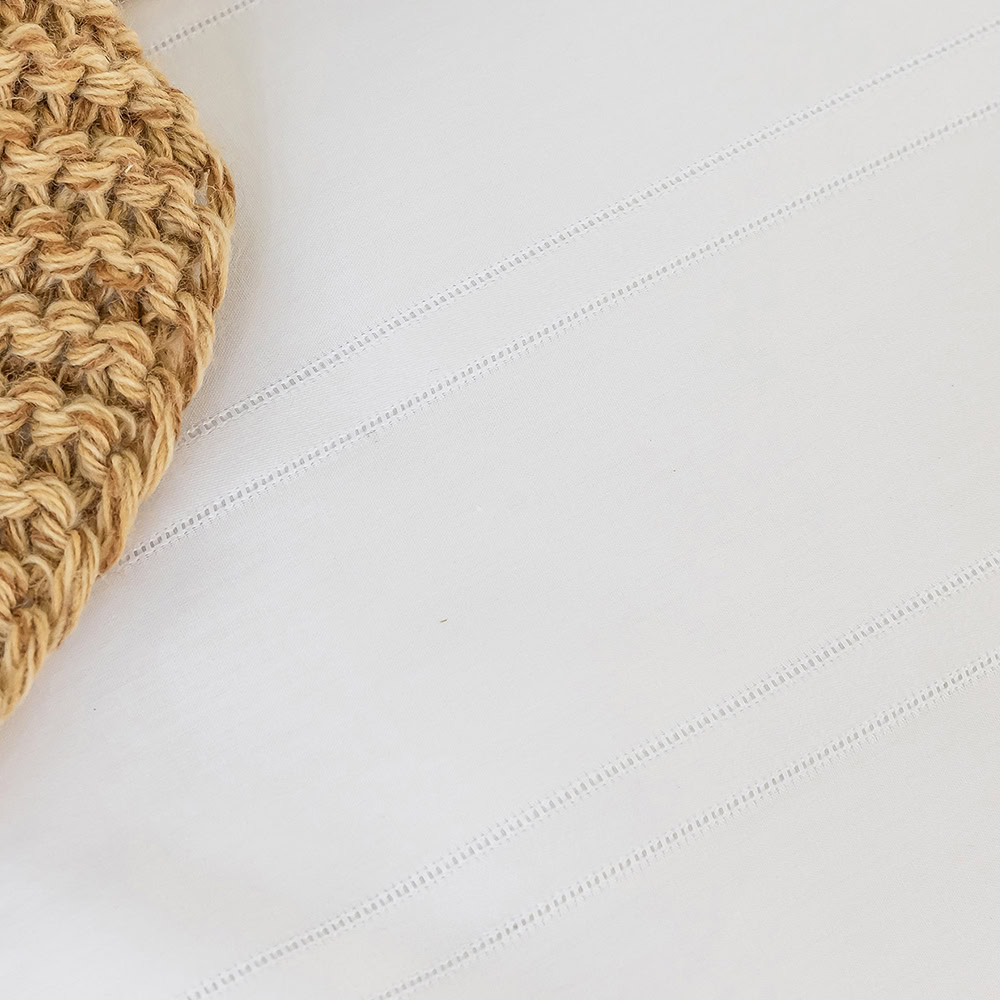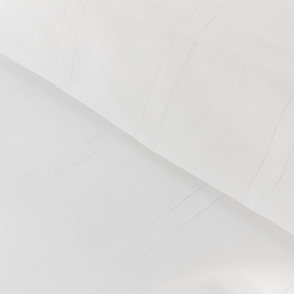 Satijnen dekbedovertrek Ajour is een luxe dekbedovertrek gemaakt van een prachtige fijne kwaliteit katoen satijn in 400 TC (thread count). Het Ajour hotel dekbedovertrek wit heeft jacquard geweven strepen die zorgen voor een chique uitstraling. Dit hotel beddengoed voelt heerlijk zacht aan, is soepel van stof en brengt een frisse, lichte sfeer in de slaapkamer.