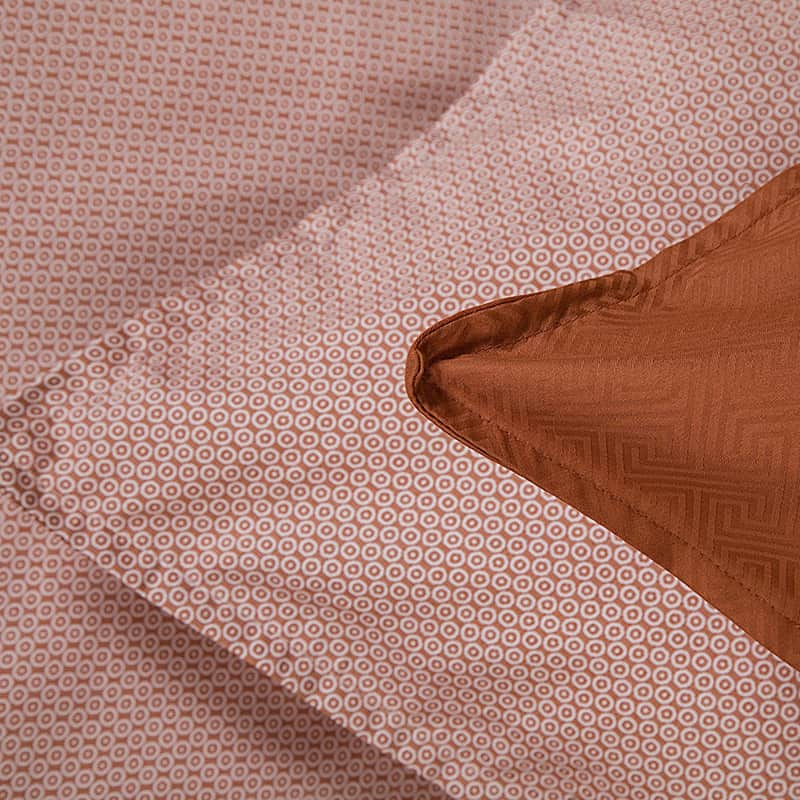 Satijnen Dekbedovertrek – Indy Roest is een prachtig dekbedovertrek gemaakt van fijn geweven katoen satijn. Het dessin is tot in de puntjes afgewerkt en de stof ziet er prachtig uit! Dit zacht beddengoed is gemaakt van 100% katoen satijn (TC 280). Het Indy dekbedovertrek in roest kleur is gemakkelijk te combineren is bij vrijwel iedere slaapkamer stijl. Het dessin is rustig, maar heeft toch een leuk werkje. De kussenslopen hebben een subtiel dubbel gestikt randje rondom van 1 cm wat de slopen een stoere en tegelijk luxe look geeft.