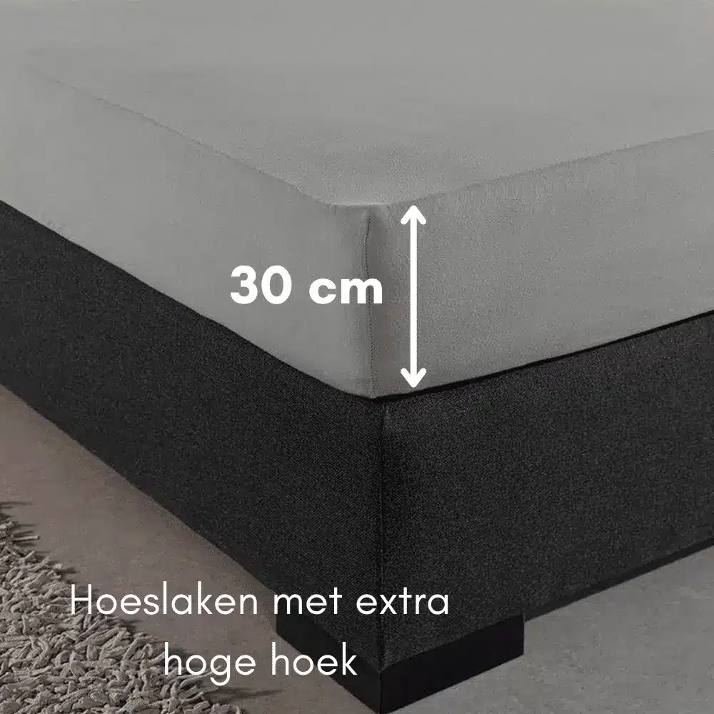 “Ik heb een boxspring van 30 cm hoog en dit hoeslaken zit er moeiteloos omheen. Geen gegraai ’s nachts meer om de hoeken vast te zetten. Aanrader!”