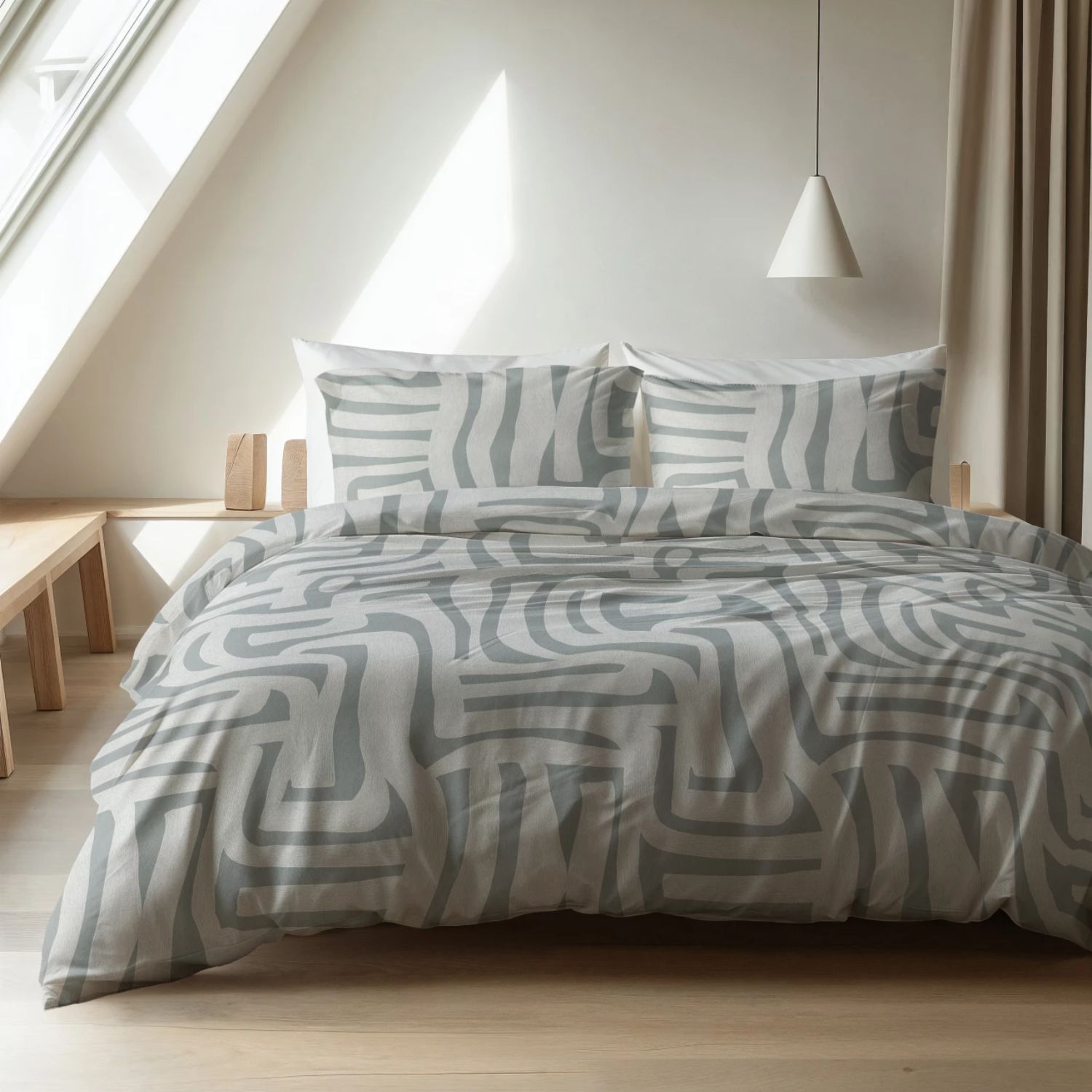 Het dekbedovertrek heeft een technische lengte van 220 cm en een instopstrook over de gehele breedte van 20 cm, zodat het netjes om het matras blijft zitten. De bijpassende kussenslopen zijn voorzien van een praktische hotel-sluiting, terwijl het overtrek zelf eenvoudig sluit met drukknopen, waardoor het bed moeiteloos opgemaakt kan worden.