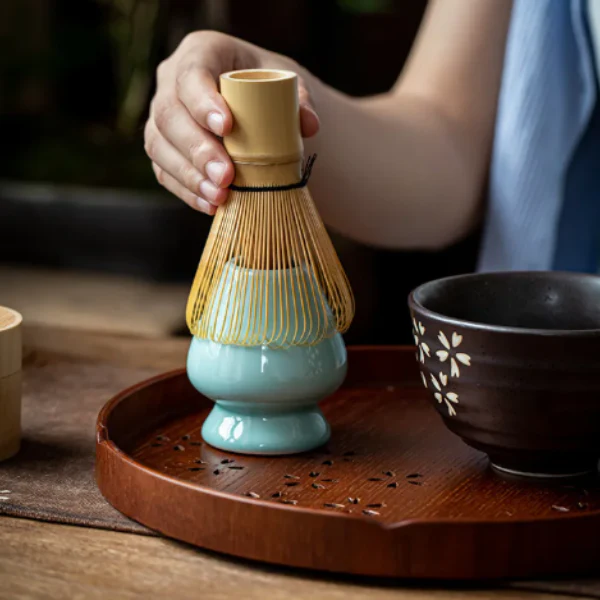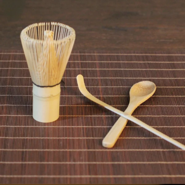 Complete Bereidingsset – Bevat een klopper, lepel en kom voor traditionele matcha bereiding thuis.